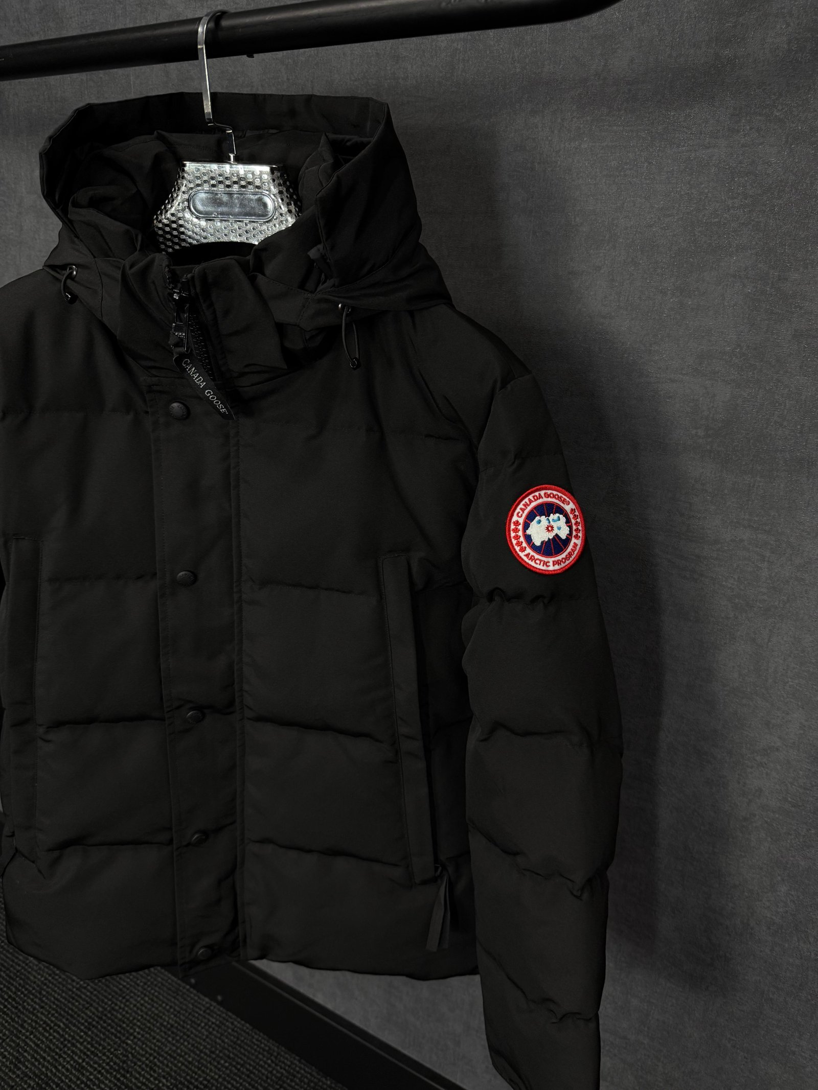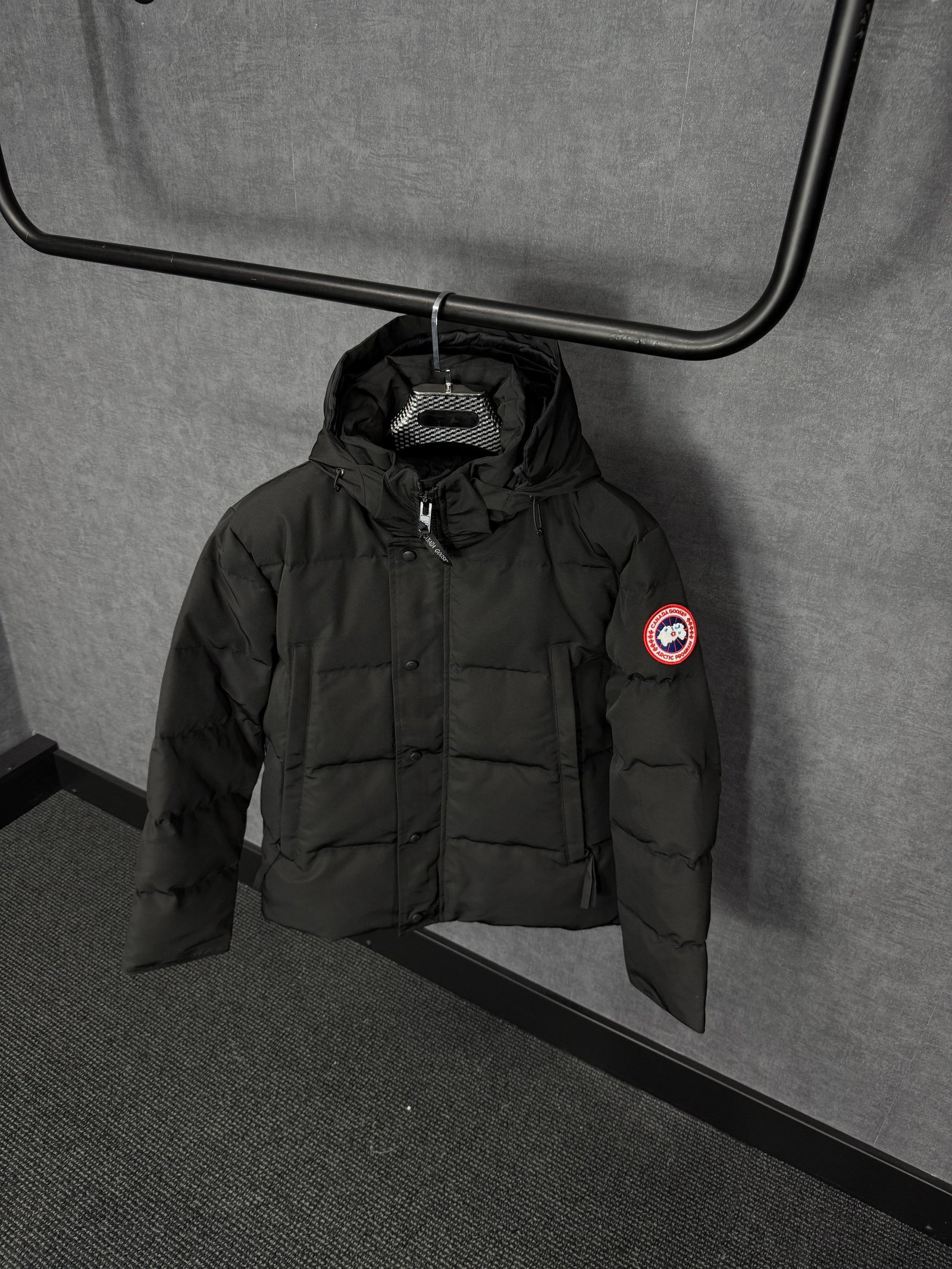Canada Goose Wyndham Black, Rode Logo High Quality