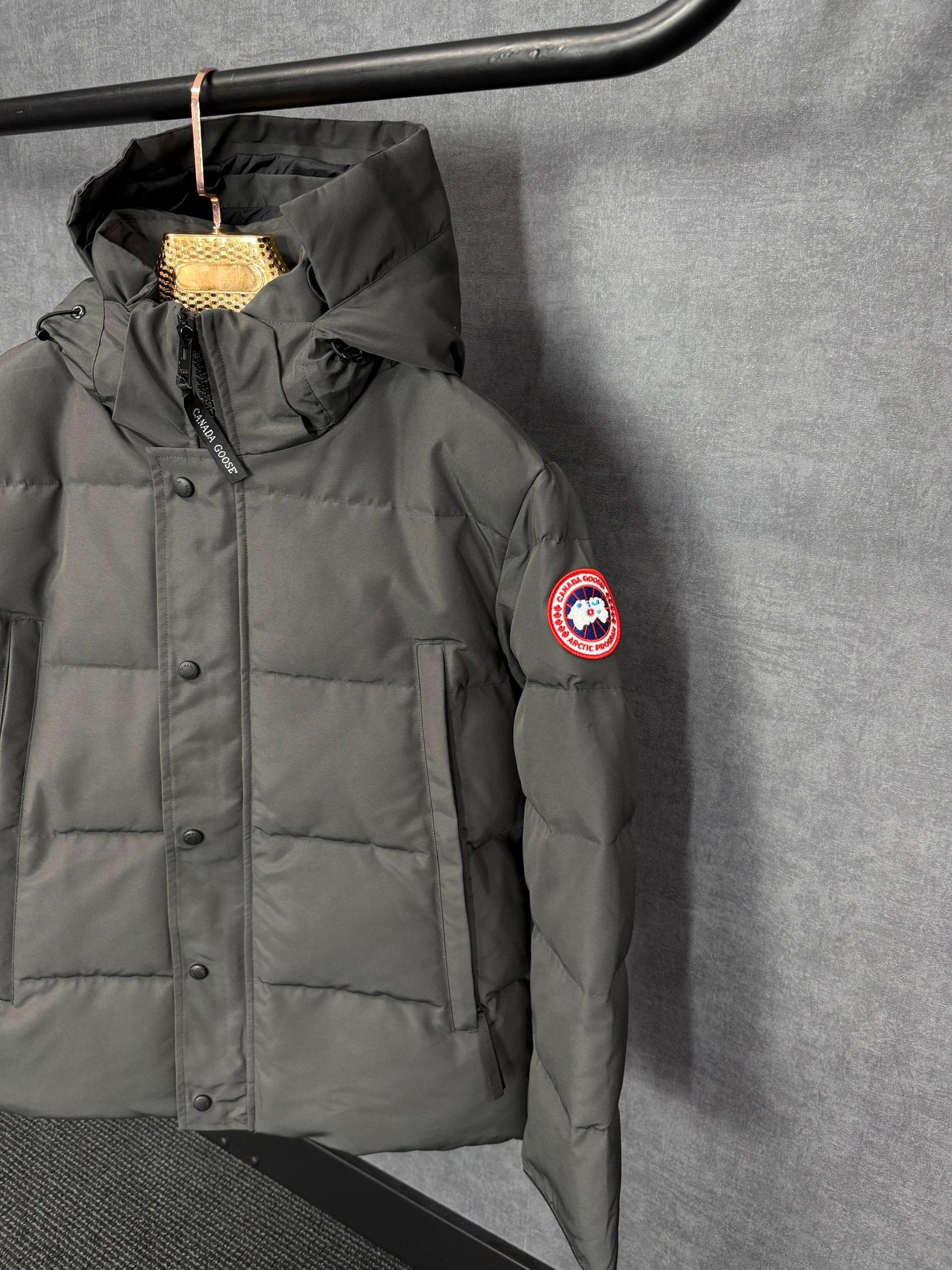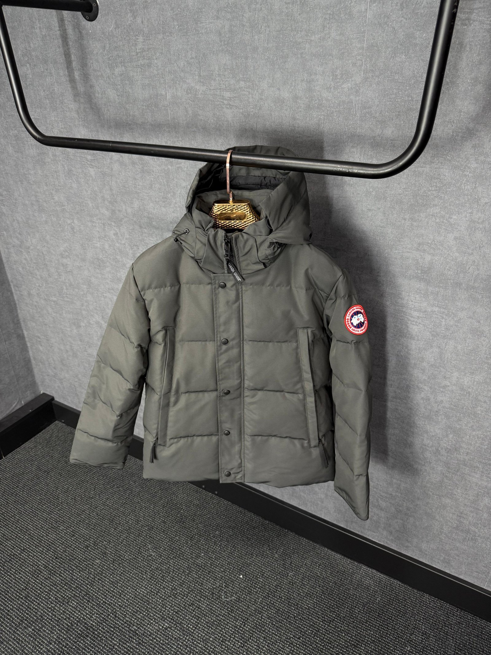 Canada Goose Wyndham Grey, Rode Logo High Quality