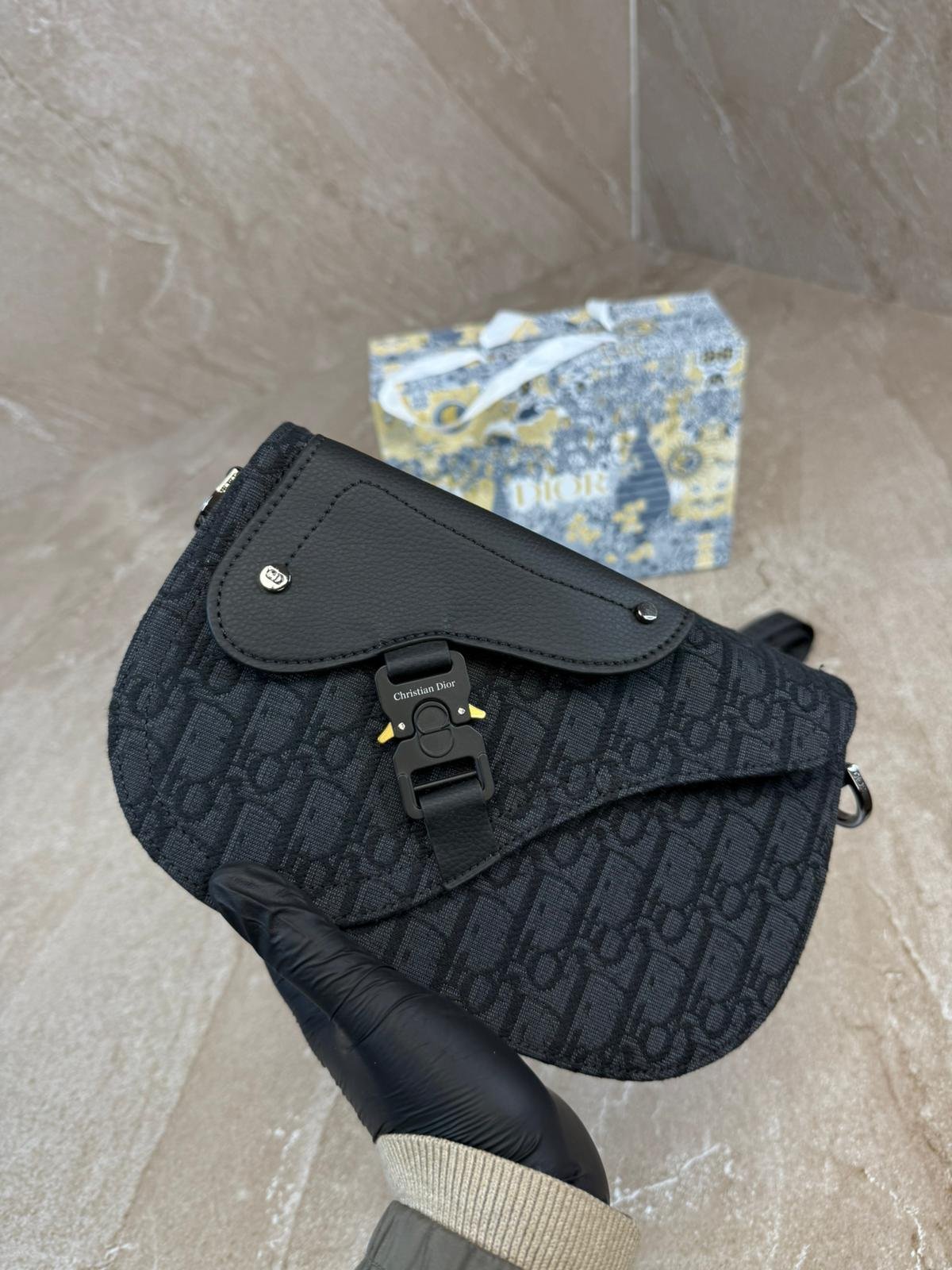 Christian Dior Black Saddle Messenger Bag Oblique-jacquard High Quality