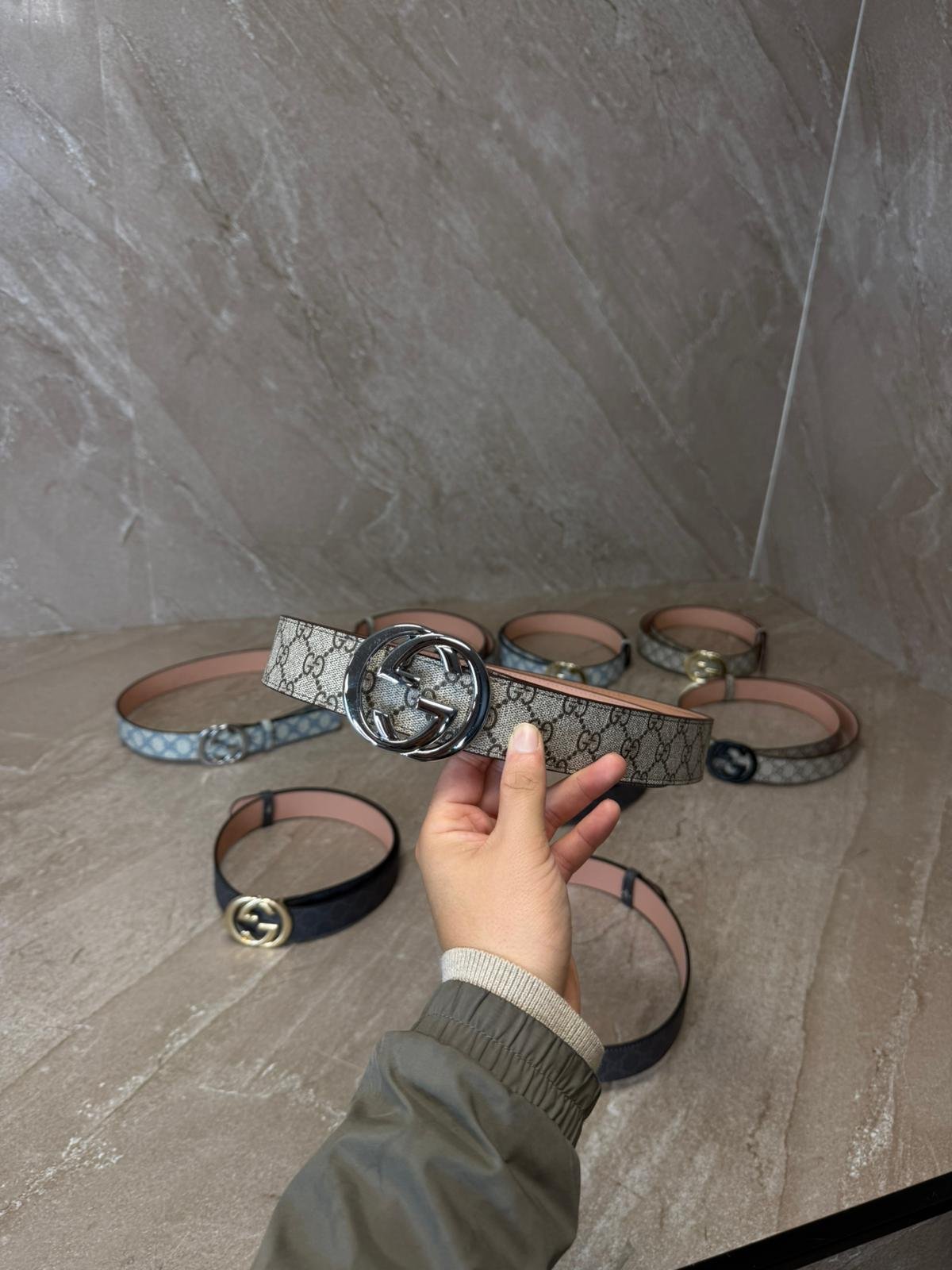Gucci Brown Riem, Zilvere Logo