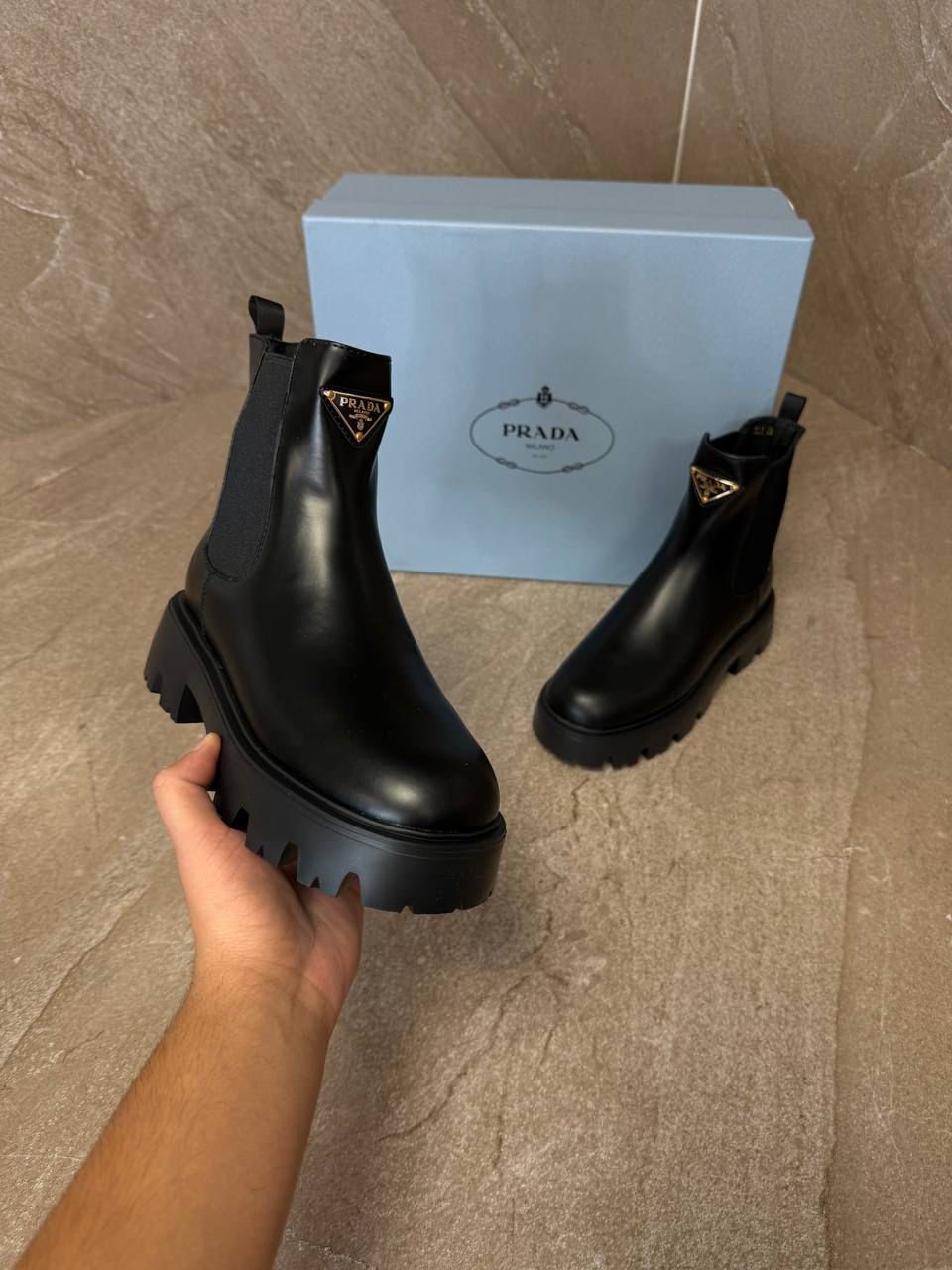 Prada Monolith Black Leather Chelsea Boots